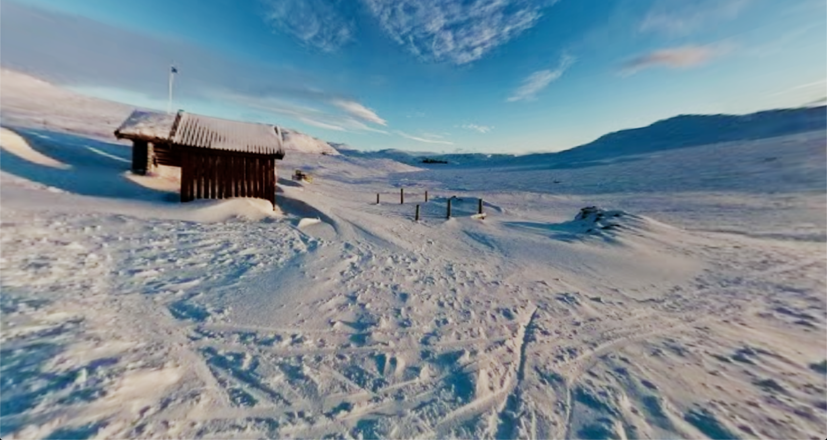 Users can click and drag to change their view. Uses skybox technique with six images projected on all the inner sides of a cube.